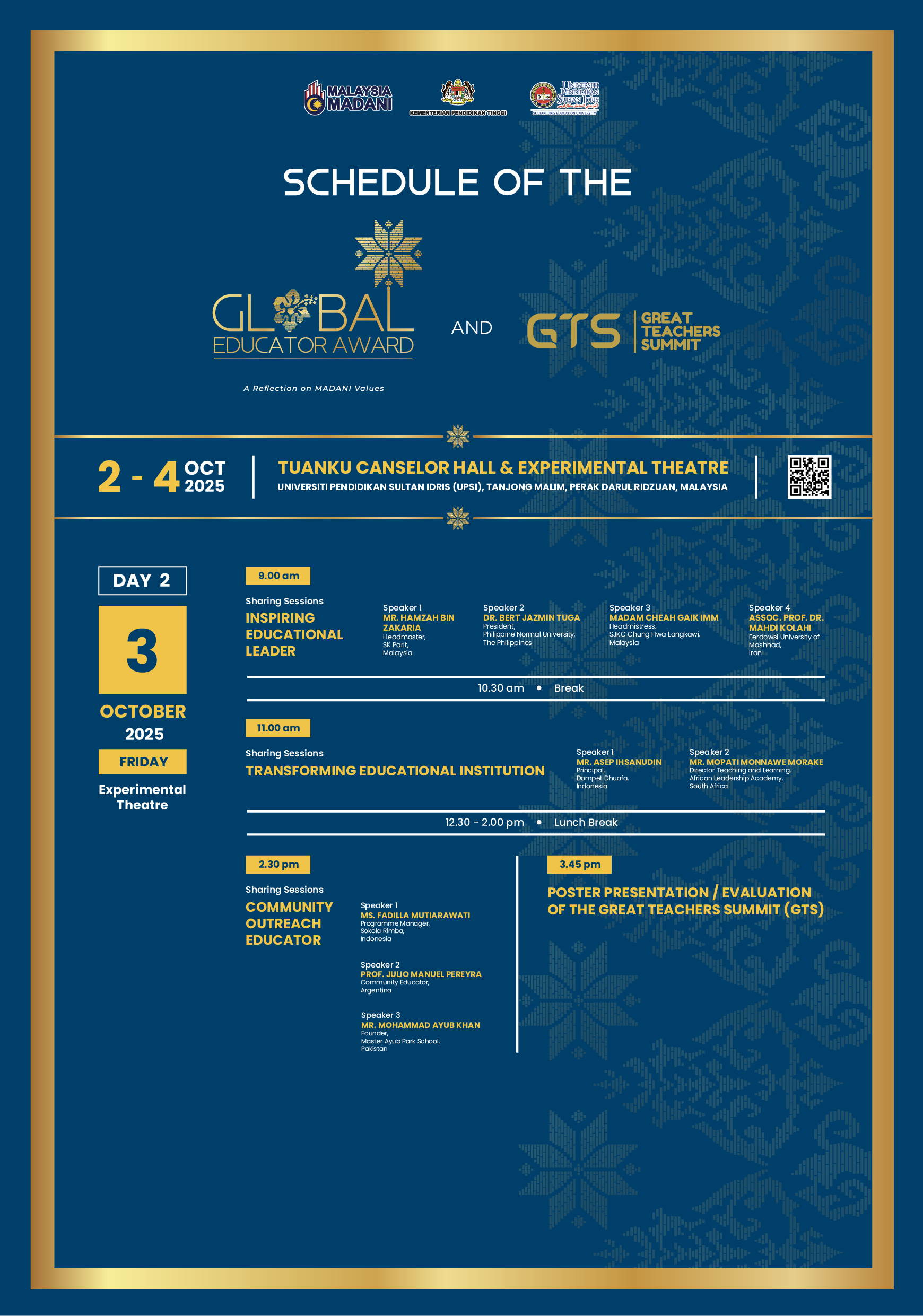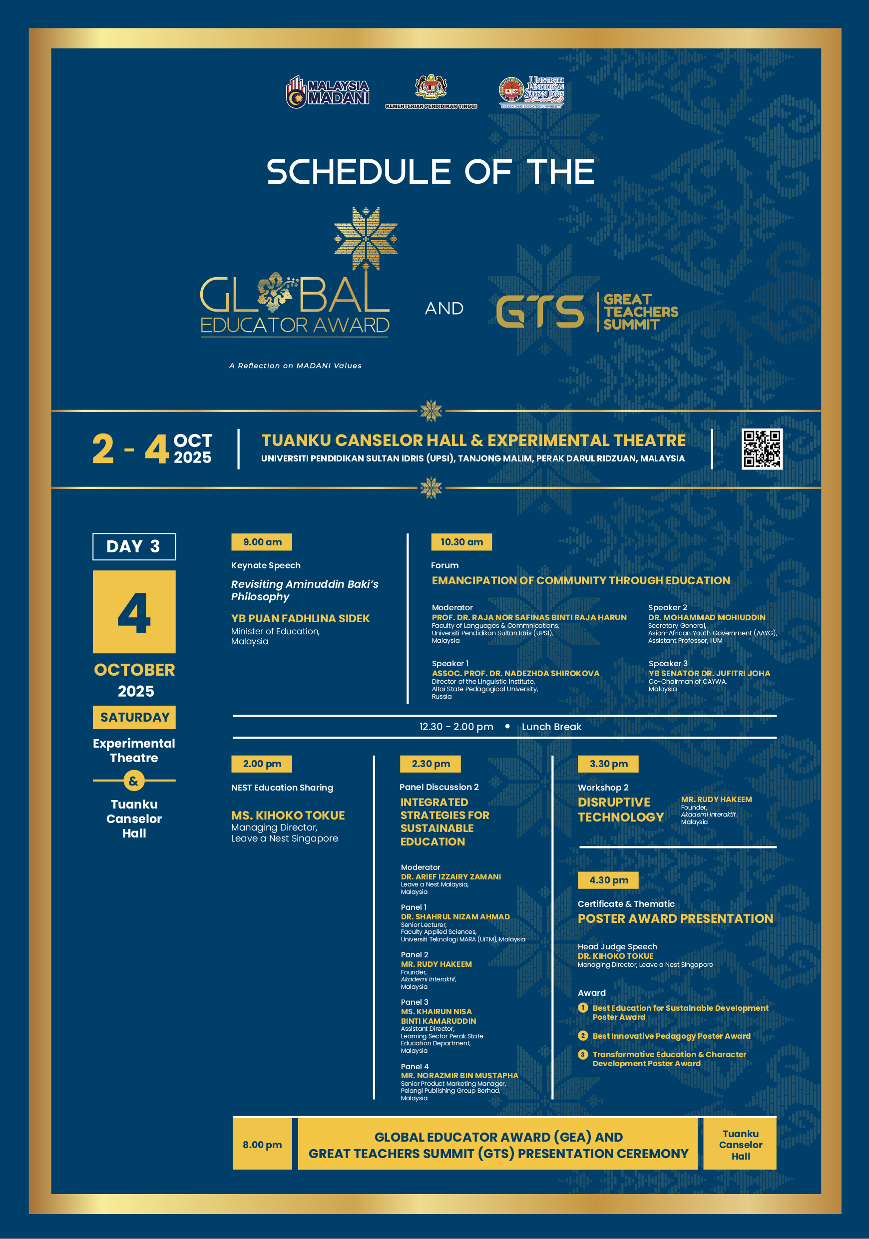 To acknowledge and reward educators and leaders worldwide who have embraced the MADANI values in their educational practices towards fostering holistic development and social harmony.